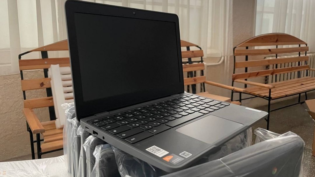 Отмечается, что сначала ноутбуки получат дети из семей, переместившихся с территорий где ведутся боевые действия.