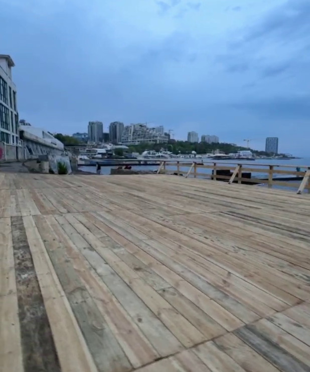 Бетонные плиты в одесской Аркадии, соединяющие участки Трассы Здоровья, снова в качестве временного решения закрыли досками.
