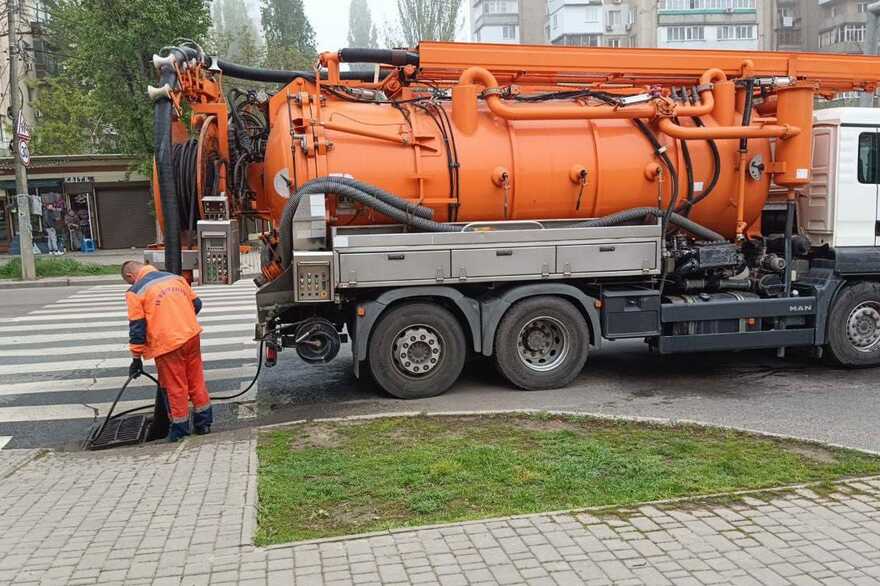 🔘ул. Евгения Чикаленко, ул. Ришельевская - очистка дождеприемников и промывка рукавов;