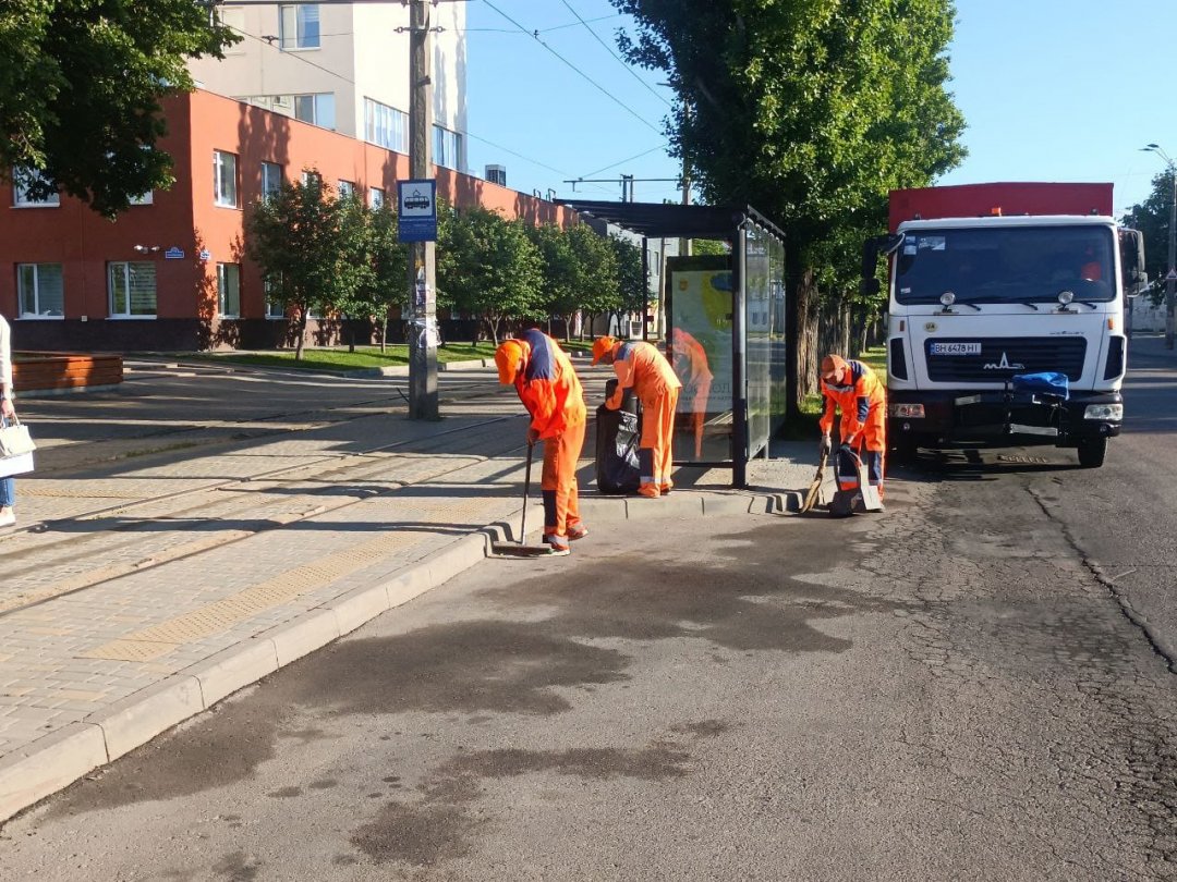 ул. Приморская, ул. Преображенская - уборка, мойка остановочных комплексов;