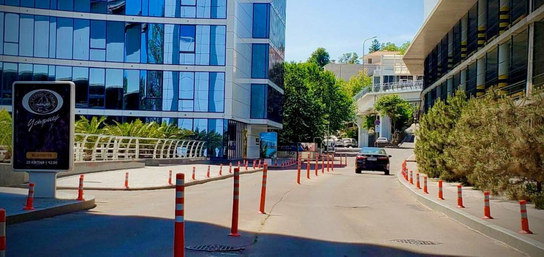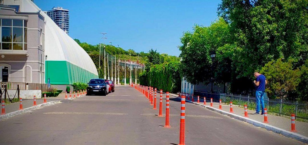 «На участке, ведущем к площадке, были установлены ограждающие столбики, предотвращающие заезд транспортных средств на зелёную зону и тротуар. Кроме того, установлены столбики, разделяющие транспортные потоки и предотвращающие ненадлежащую парковку авто», — говорится в сообщении