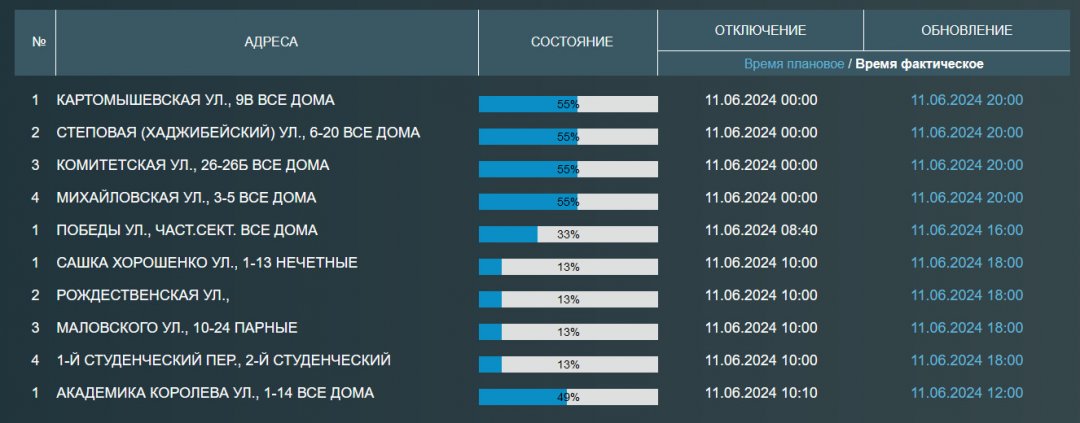11 июня жители ряда одесских улиц остались без водоснабжения из-за аварийного ремонта городских водопроводных сетей, в некоторых вода появится уже к полудню, но многие пробудут без водоснабжения до вечера.