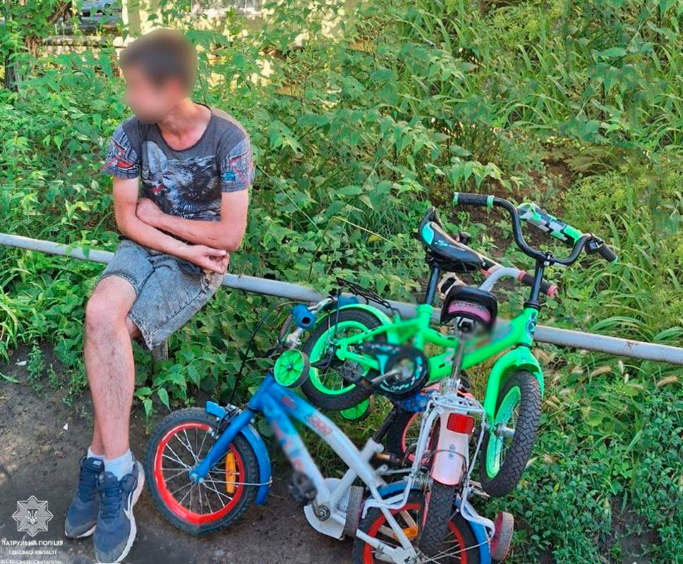 В Одессе патрульный в отпуске задержал вора сразу после кражи трех детских велосипедов.
