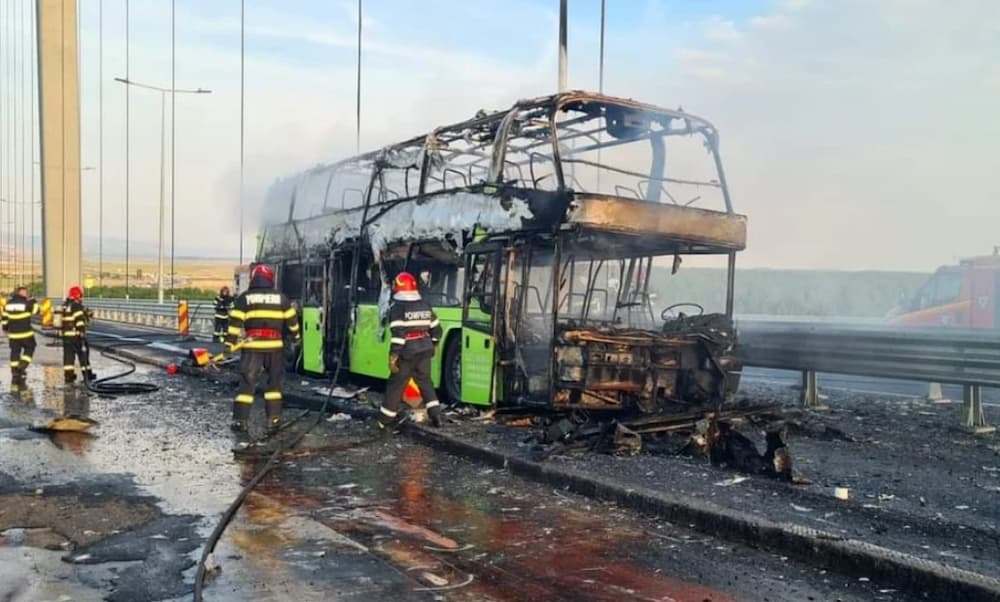 В Румынии на мосту через Дунай полностью выгорел автобус сообщением Одесса-София, перевозивший 53 граждан Украины. Пострадавших в результате возгорания нет, все пассажиры смогли самостоятельно выбраться из салона.