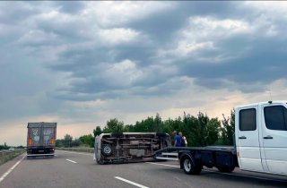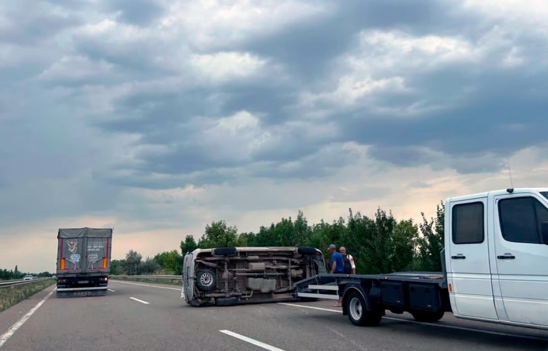 По предварительной информации, инцидент произошел в 105 км от Одессы на трассе М05, где микроавтобус марки Hyundai перевернулся, загородив путь другим транспортным средствам. Причины аварии пока не установлены, и в настоящее время на месте происшествия работает эвакуатор, который должен убрать микроавтобус с проезжей части.