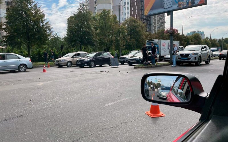 Сегодня, 10 сентября, около восьми часов вечера на проспекте Небесной сотни произошла крупная авария. По предварительным данным, 24-летний мотоциклист, двигавшийся со стороны улицы Левитана, не справился с управлением и врезался в автомобиль Hyundai, который перестраивался с одной полосы на другую.