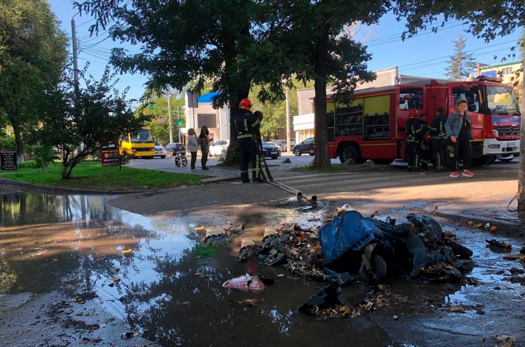 В Одессе, на улице Черняховского, неподалеку от остановки общественного транспорта, произошел пожар. Огонь охватил один из мусорных баков.