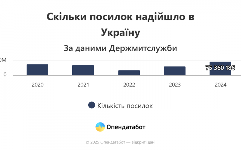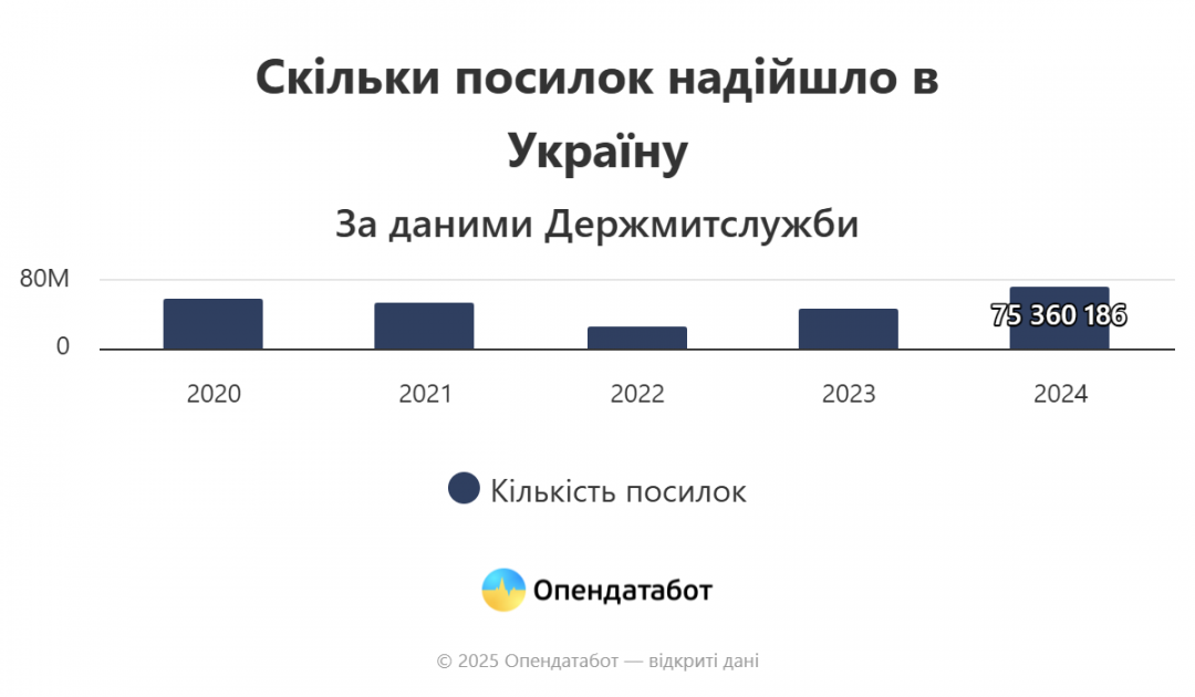 По данным Государственной таможенной службы, с 2020 года в Украину было ввезено более 272 миллионов посылок, из которых лишь 0,75% попали под пошлину. Больше всего отправлений поступило в 2024 году, тогда же в государственный бюджет поступило более 185 миллионов гривен пошлины.