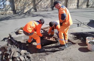 Сотрудники коммунальных служб выполняют очистку, ремонт и техническое обслуживание объектов городской инфраструктуры. В частности, ремонт дождеприемников с заменой чугунных решеток осуществляется по следующим адресам: