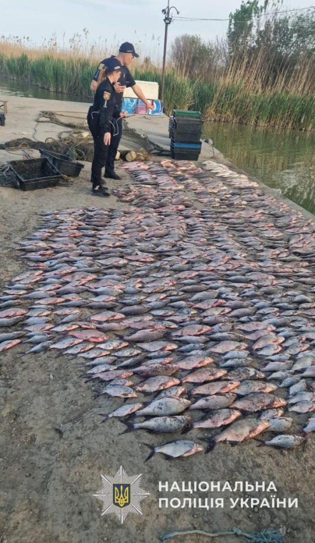 Для надлежащего документирования факта правонарушения на место происшествия была вызвана следственно-оперативная группа территориального подразделения полиции. Правоохранители провели осмотр и изъяли у правонарушителей в качестве вещественных доказательств их орудия лова (сети), плавсредства (лодки), а также незаконно добытый улов – почти 800 единиц рыбы различных видов и размеров. Среди изъятой рыбы были такие ценные и распространенные виды, как карась, сазан, толстолобик, лещ, судак, щука, белый амур, жерех, чехоня.