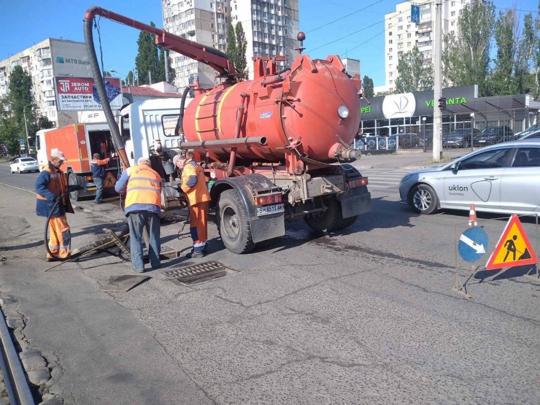 Ул. Академика Вильямса – очистка дождеприемников и промывание рукавов ливневой канализации.