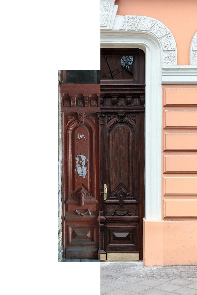 Реставрация проводилась специалистами мастерской с особым вниманием к сохранению подлинности. Мастера очистили деревянные поверхности от слоев старой краски, восстановили поврежденные резьбу и конструкцию, а также вернули на место оригинальную латунную фурнитуру. «Наша цель — чтобы двери снова заговорили на языке своего времени, отражая точность и уважение к деталям», — отметили в «Тысячи дверей». Эти усилия позволили не только обновить внешний вид, но и продлить жизнь исторического элемента здания.