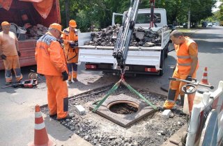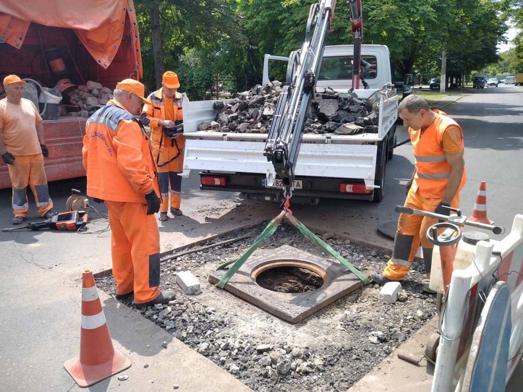 Улица Краснова, 12 — проводится ремонт смотрового колодца с заменой чугунного литья и плиты перекрытия.