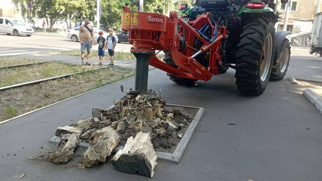 Сотрудники коммунального предприятия «Горзелентрест» продолжают проведение масштабных работ по корчевке пней на улицах Одессы. В настоящее время специалисты сосредоточены на улице Канатной, где за неделю уже было удалено 34 пня из запланированных 51. Об этом официально сообщили в пресс-службе Одесского городского совета.