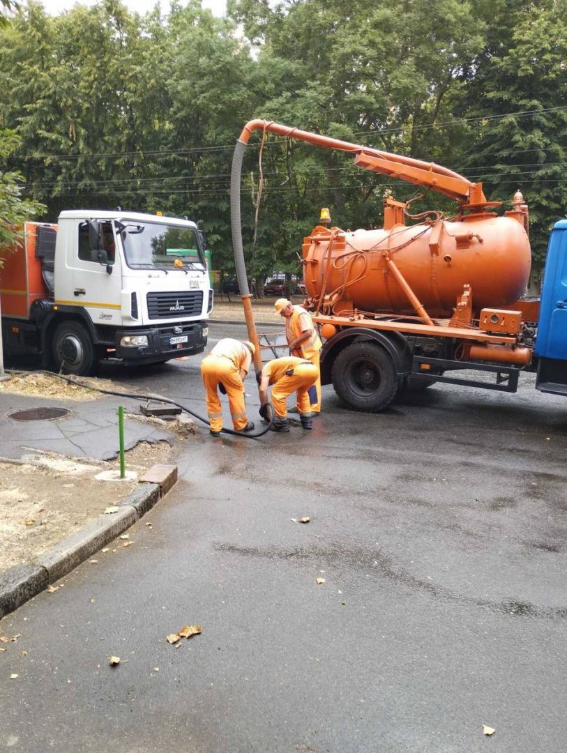 Фонтанская дорога, 6–9 ст. — очистка дождеприемников и промывка рукавов.