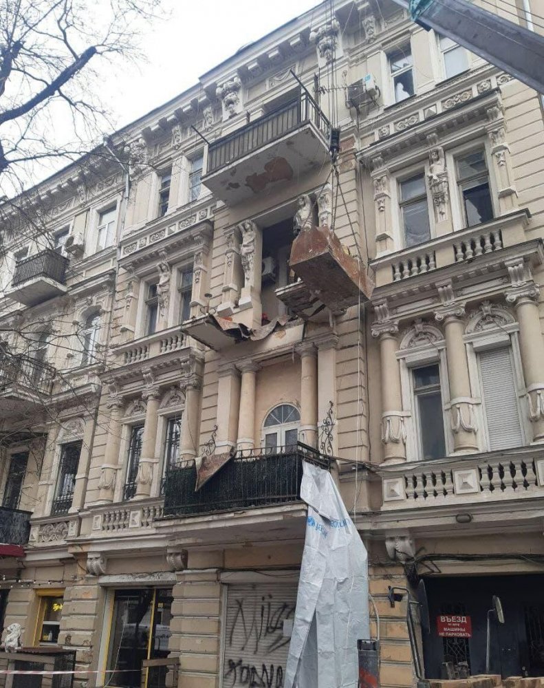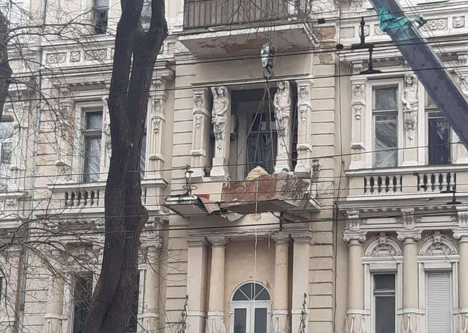 В среду, 26 ноября, в историческом центре Одессы были демонтированы остаточные конструкции балкона дома-памятника архитектуры, расположенного по адресу улица Новосельского, 91. Необходимость экстренных работ возникла после того, как накануне произошел обвал средней части этого балкона.