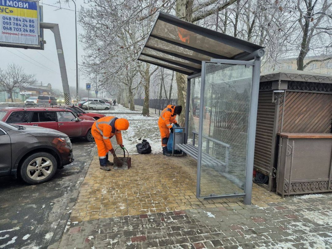 улица Инглези, улица Космонавтов, улица Косовская, улица Пишенина, проспект Добровольского, улица Варненская, площадь Толбухина, улица Малиновского, улица Святослава Рихтера — проводится уборка остановочных комплексов и обработка их противогололедными материалами;