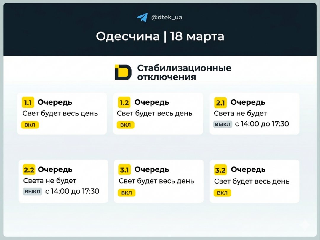 В общем, расклад такой: промышленность по всей стране садится на диету с 16 до 21, Одесская область живет по графикам, а сама Одесса — по настроению энергосистемы. Запасаемся терпением и пауэрбанками.