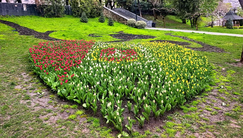 В Стамбульском парке Одессы внезапно появилась новая фотозона — огромное сердце, выложенное из тысячи тюльпанов. Красные, жёлтые и белые цветы заботливо высадили осенью специалисты коммунального предприятия «Горзелентрест». Получилось очень патриотично: цвета точно соответствуют флагу Одессы, а размер инсталляции примерно 4 на 4 метра.