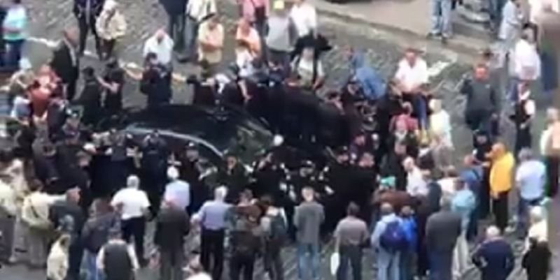 "По словам очевидцев, от водителя сильно разило алкоголем. В машину полетел громкоговоритель и камни", - говорится в его сообщении. Кривопалый рассказал, что сотрудники полиции увезли одного из активистов и взяли машину в кольцо.
