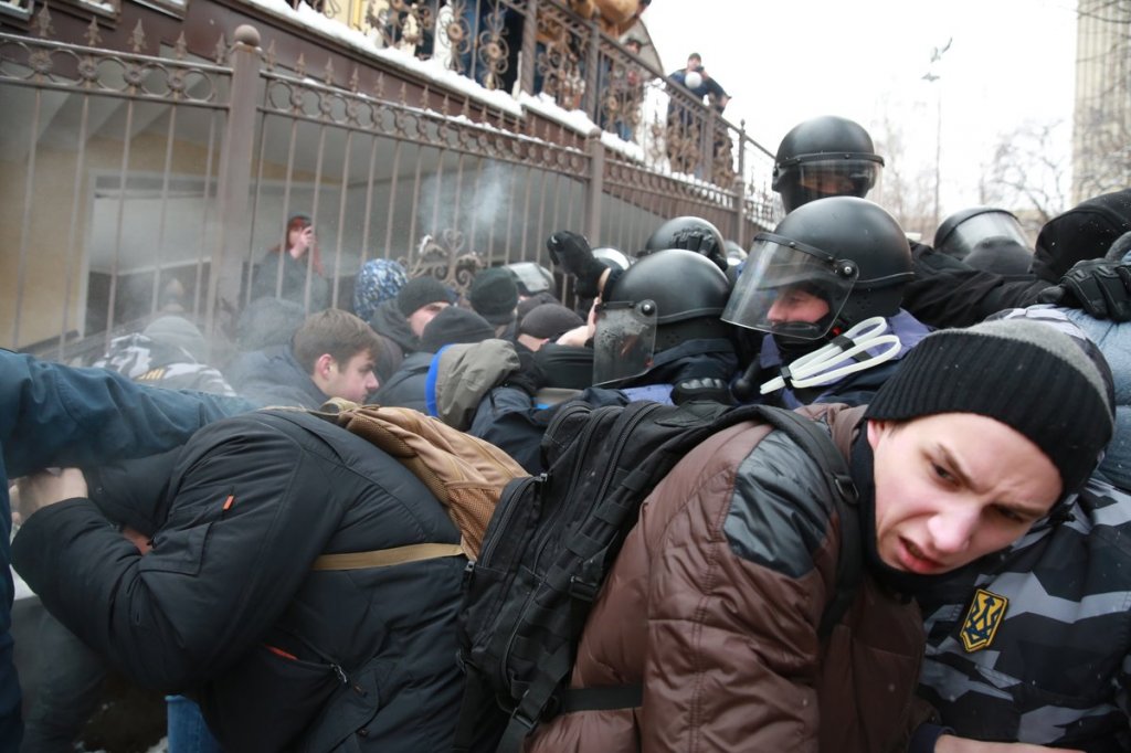 Позже под судом националисты подрались с полицией. По информации издания, потасовка началось после того, как националисты попытались прорваться в здание суда. Во время драки был применен слезоточивый газ.