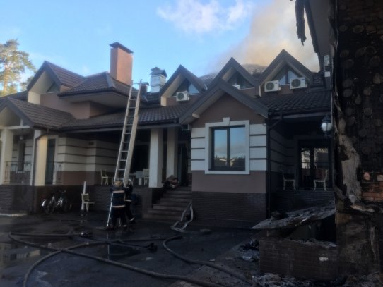 Спасатели продолжают ликвидировать пожар в ресторанном комплексе «Боровик» в селе Новоселки Вышгородского района. По данным ГосЧС, сообщение о возгорании в ресторане, на ул. Сосновая поступило в 06:16.