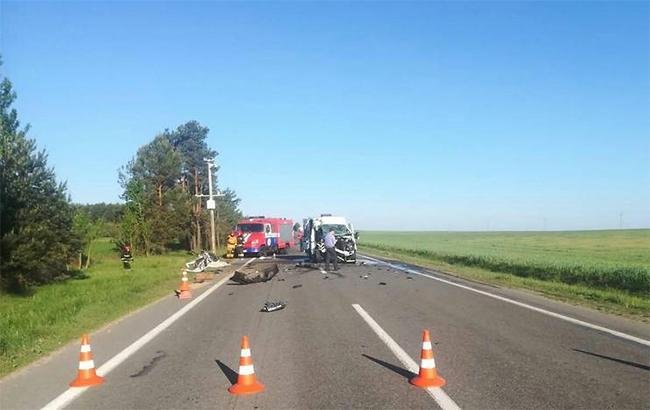 ДТП с украинскими детьми в Беларуси произошло утром 13 мая 2018. Водитель украинского микроавтобуса "Рено Мастер" совершил столкновение с погрузчиком "Амкодор". В результате аварии погиб ребенок 2005 года рождения, который находился на переднем пассажирском сидении. Также сообщалось о шести пострадавших в ДТП.