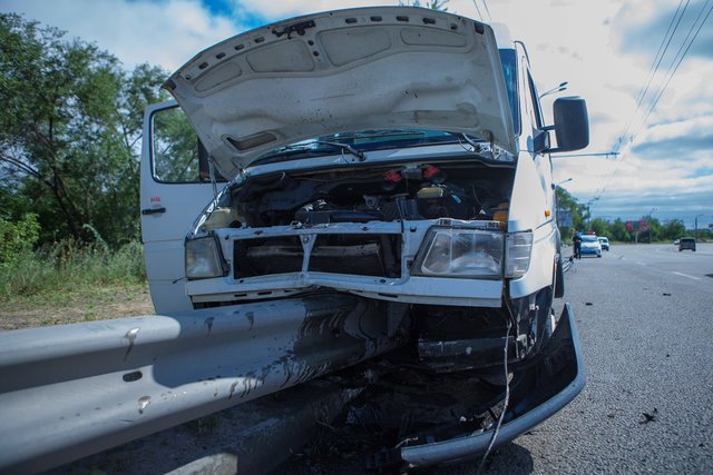Предположительно, водитель не справился с управлением в тот момент, когда машину повело. К счастью, никто не пострадал, однако сам автомобиль получил весьма серьезные повреждения: из-за удара деформировалась передняя часть маршрутки.