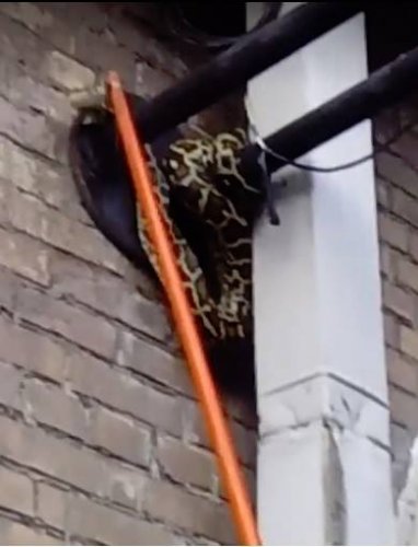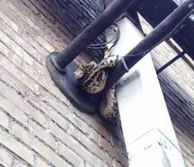 В центре Киева на ул. Жилянской, 54 прохожие обнаружили питона, который располагался на фонарной опоре. Об этом сообщается на странице Команды спасения животных в Facebook.