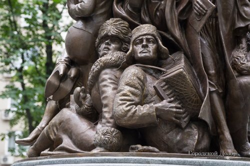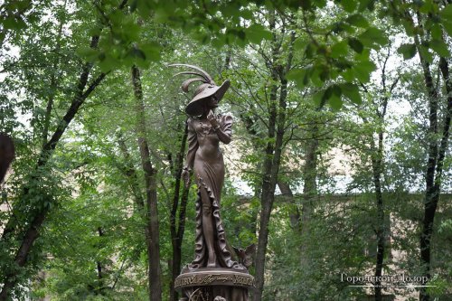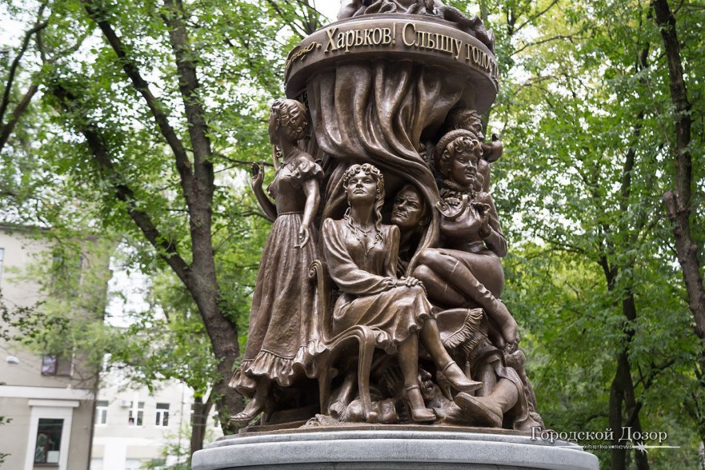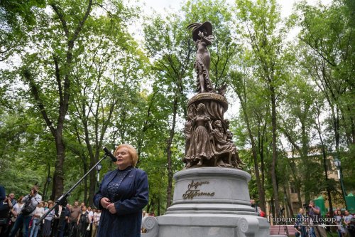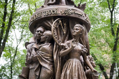 Памятник выполнен в виде композиции из 15 персонажей, которых играла актриса, а над ними - скульптура самой Людмилы Гурченко.