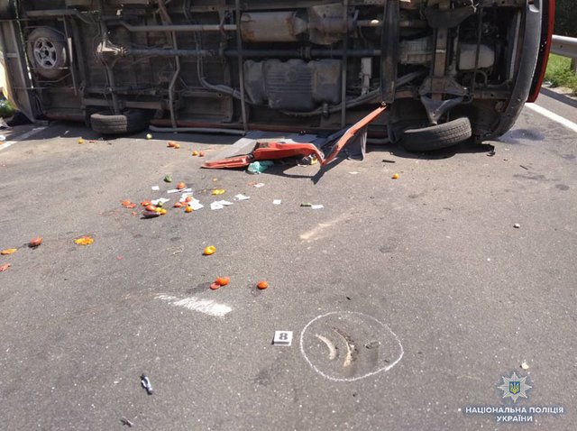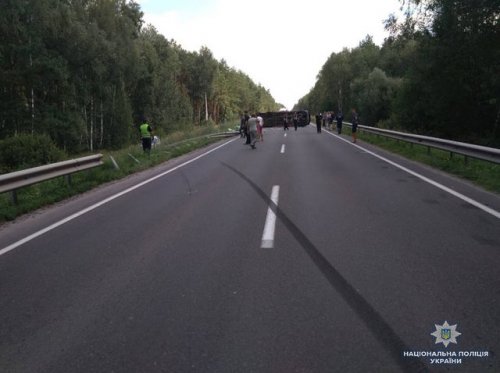 "Женщина-водитель автобуса решила обогнать фуру. Она выехала на встречную полосу, где увидела мотоцикл. Водитель резко направила транспортное средство вправо, где зацепила бордюр, после чего автобус перевернулся", – рассказал в комментарии сайту "Сегодня" руководитель пресс-службы ГУНП в Черниговской области Сергей Брыль.