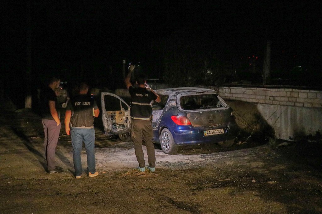 Автомобиль Peugeot 307 синего цвета, на котором уехали преступники, нашли сгоревшим на улице Нечуя Левицкого.