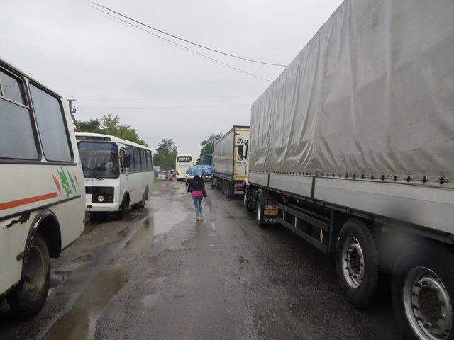 Сегодня акция протеста продолжается. Несмотря на дождь, люди продолжают перекрывать дорогу, пропускают только "скорые" и машины с маленькими детьми. Вследствие протестной акции на дороге образовался длинный затор, где простаивают фуры и пассажирские автобусы.