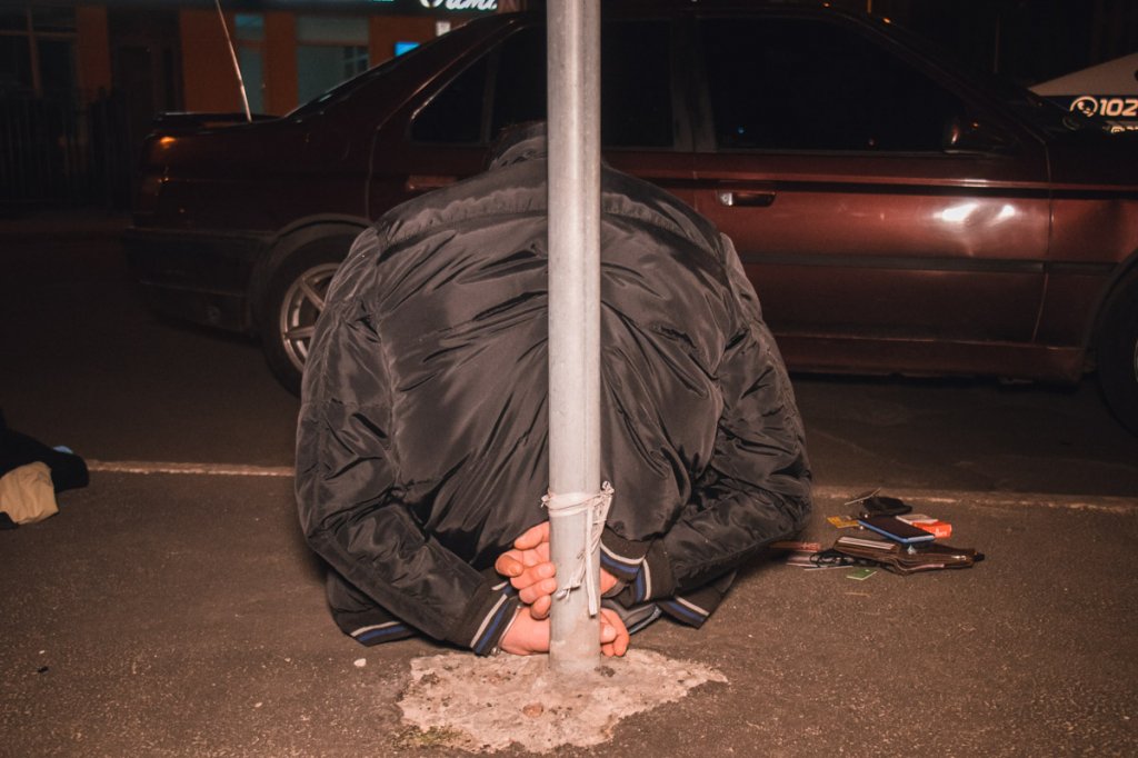 Правоохранителям удалось догнать Peugeot и остановить его. В машине находились двое мужчин. В ходе разбирательств было установлено, что это таксист и пассажир Евгений. При осмотре личных вещей пассажира были обнаружены наручники, предмет похожий на пистолет и гранату.