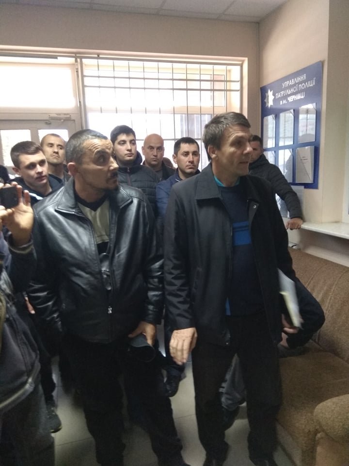 По данным издания, в митинге участвуют около 40 человек. К протестующим вышел глава патрульной полиции Шкроб и пригласил их на переговоры.