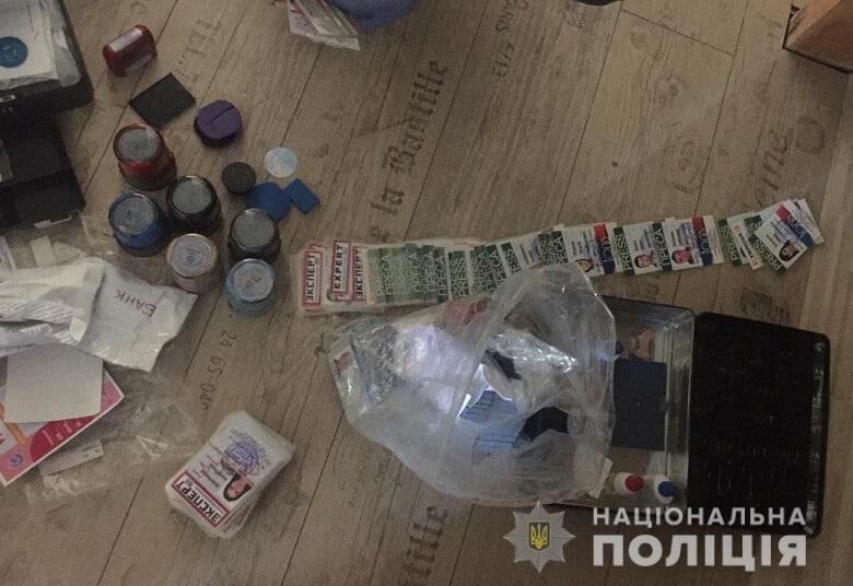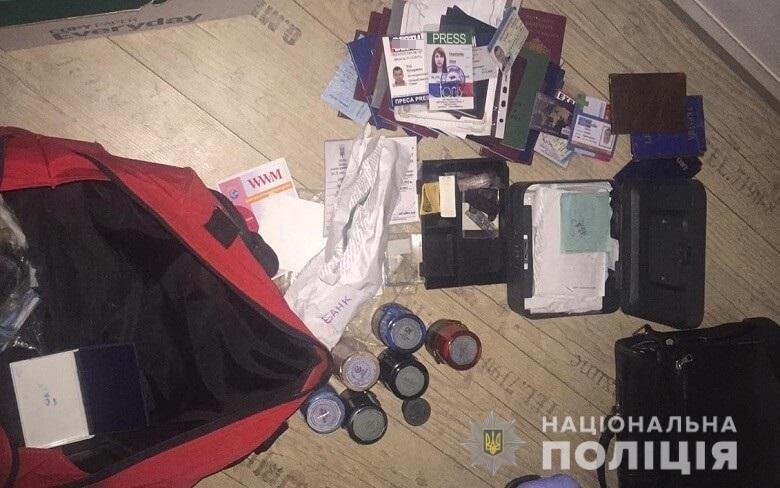 В ходе обыска в квартире подозреваемого мужчины 1978 г.р., правоохранители Оболонского управления полиции обнаружила более 30 паспортов разных государств, около 500 удостоверений с надписями "Пресса", 23 водительских удостоверения другой страны, а также оттиски для печатей, запал от гранаты, пакет с веществом белого цвета и сверток с растением зеленого цвета.