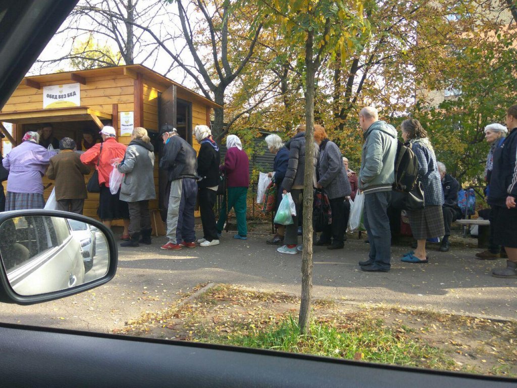 Кстати, точка социального питания, где стоят люди, многие из которых совсем не похожи на бездомных, расположена буквально в 20 метрах от здания Госказначейства - главного аккумулятора государственных средств.
