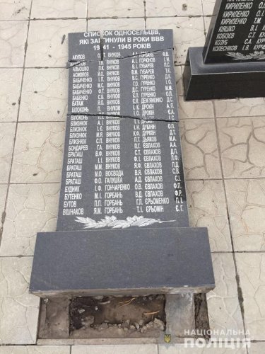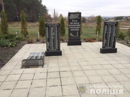 В c. Циркуны Харьковской области, 22 октября вандалы повредили мемориальный комплекс погибшим в годы Великой Отечественной войны. Об этом сообщается на сайте Главного управления Национальной полиции в Харьковской области.