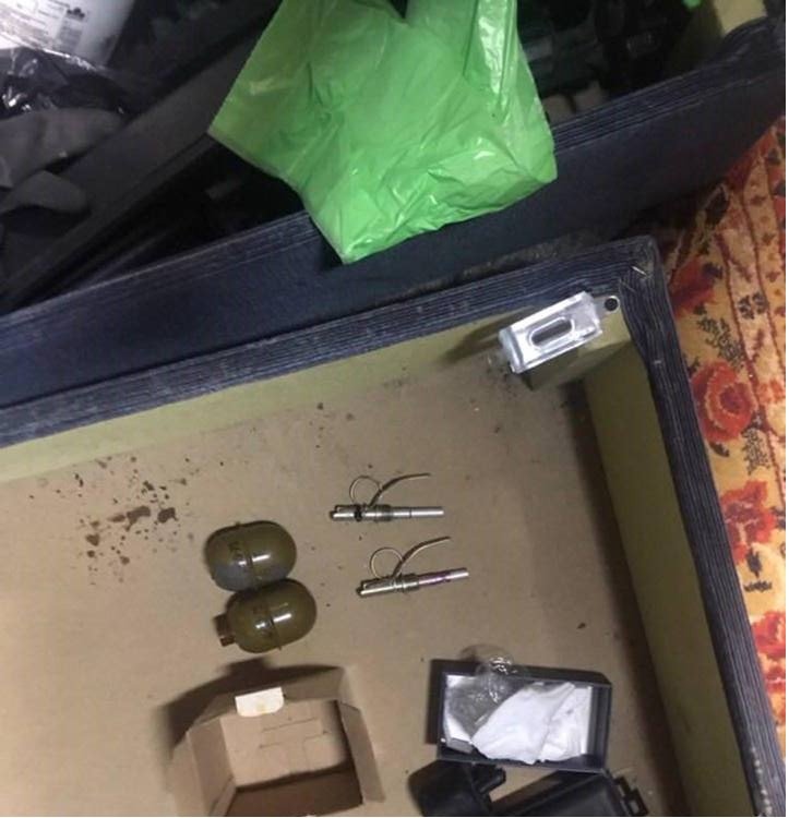 "Во время проведения неотложного обыска в гаражном помещении, в котором задерживался один из мужчин, правоохранители обнаружили две гранаты РГД-5, два пистолета, 120 грамм амфетамина и расфасованное в восемь пакетов наркотическое средство каннабис", - говорится в сообщении.