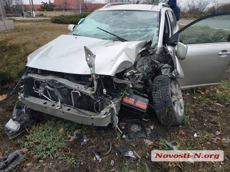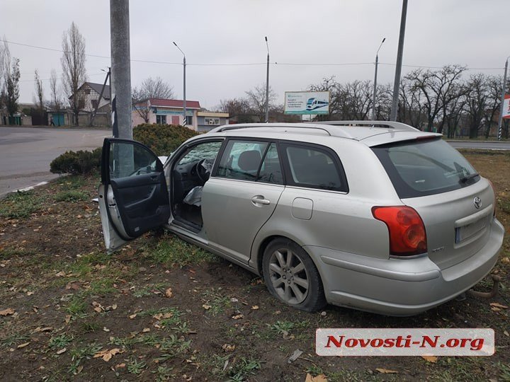 Днем в среду, 21 ноября, на Жуковском кольце в Николаеве автомобиль Toyota Avensis выехал на клумбу и врезался в столб.