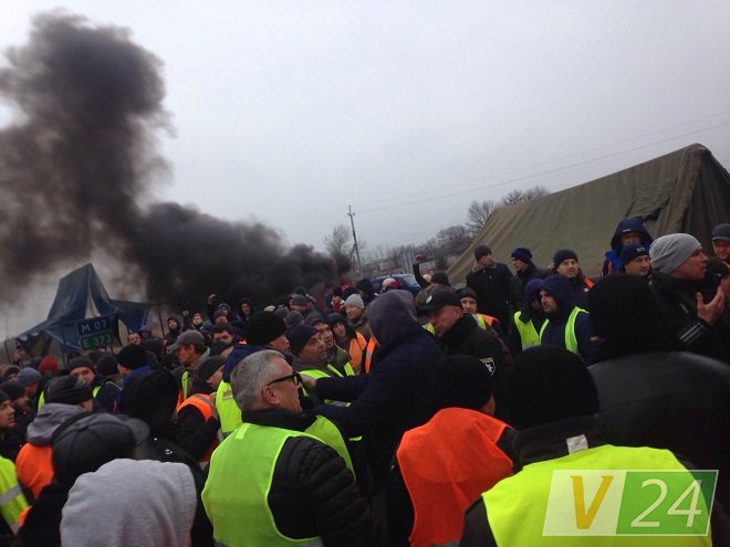 Сегодня, 26 ноября, на КПП Ягодин на границе с Польшей, где митингуют владельцы авто на еврономерах, произошла массовая евробляхеров с дальнобойщиками. Об этом сообщает местное издание "Волынь.24".