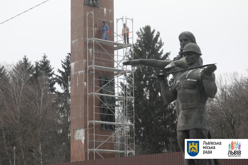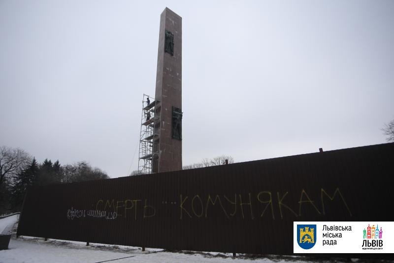 Львовский горсовет вынес решение демонтировать стелу в феврале 2018 года. Эту часть Монумента Славы огородили забором, на который с горбюджета выделили 400 тысяч грн.
