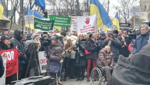 Около 500 нотариусов проводят акцию протеста у Кабинета Министров против действий Министерства юстиции, передают «Українськi Новини».