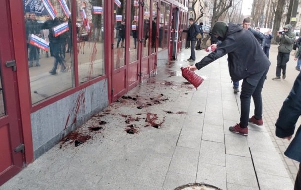Активисты националистической организации Традиция и порядок во вторник, 12 марта, облили кровью и обклеили стикерами вход в здание Национального антикоррупционного бюро Украины. Об этом сообщает Информатор.