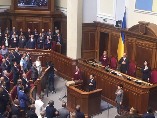 В понедельник, 20 мая, после церемонии инаугурации в Верховной Раде новым президентом Украины стал Владимир Зеленский. Он принес присягу в здании парламента на торжественном заседании. Об этом сообщает корреспондент "Страны" с места событий.
