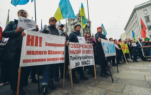 Как пояснили представители малого бизнеса, принятие указанных законов уничтожит их небольшой бизнес. В частности, по словам предпринимателей, эти законы предусматривают введение кассовых аппаратов даже в маленьких магазинах, а все чеки надо будет направлять в налоговую и платить с каждого чека налог, а если сумма за год будет выше 300 тысяч грн, то надо будет уже платить налоги как большой бизнес. Сейчас у малого бизнеса фиксированный налог.