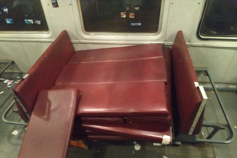 В вагоне были сорваны и сломаны 35 сидений и стоп-кран.