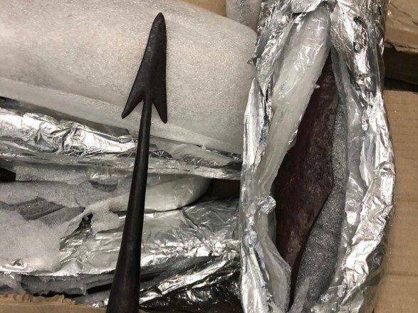 Среди предметов таможенники обнаружили наконечники к стрелам и копий, различные ножи и другие предметы старины.