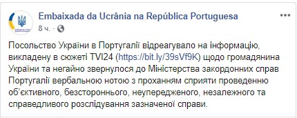 На убийство отреагировало посольство Украины в Португалии. Украинская сторона обратилась в Министерство иностранных дел Португалии с нотой о содействии объективному расследованию.