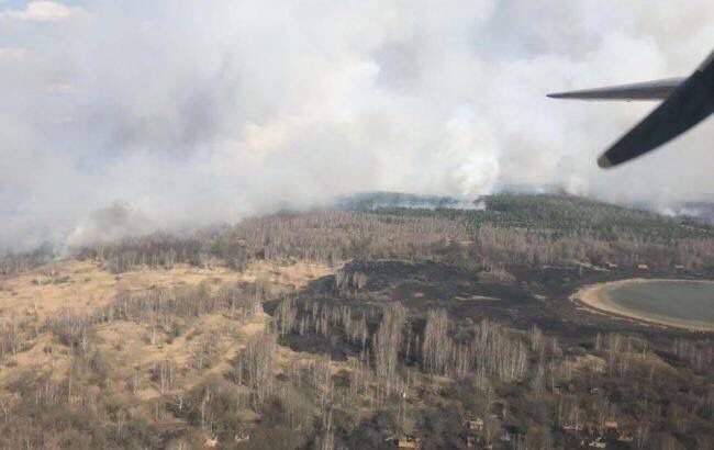 "По состоянию на 6:00 пожар не локализован, остается горение тремя отдельными очагами вблизи населенных пунктов Звиздаль и Малые Миньки на общей площади 15 га", - говорится в сообщении.